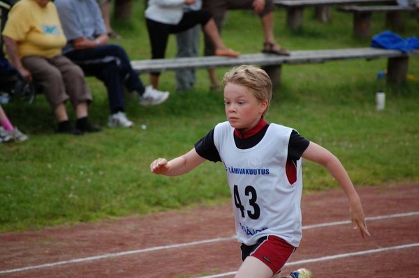 Sisulisäottelut käytiin Oulussa alkuviikosta. Vesa nappasi kolmiottelun voiton 9-sarjassa ja Mikko 10-sarjassa. Sisulisäotteluissa eli alle 15-vuotisten piirinmestaruusotteluissa oli sarjoja 9-15-vuotiaille. Alle 9-vuotiailla oli kolme lajia (40m, pituus, kuula). 10-11-vuotisilla 40 metrin sijasta juostiin 60 metriä. Sitä vanhempien sarjoihin Wirrasta ei tällä kertaa osallistunut ketään. Maanantaina käytiin tyttöjen ottelut. Wirrasta oli mukana kolme kilpailijaa alle 9-vuotisten tyttöjen sarjassa. Yhteensä sarjassa kilpaili 17 tyttöä. Emilia Malinen, Julia Oravisjärvi ja Tytti Karsikko sijoittuivat peräkkäisille sijoille 9.-11. Kaikki tekivät tulosparannuksia kesän aiempiin kisoihin verrattuna - Emilia ja Julia kuulassa ja Tytti pituudessa. Emilia pääsee kilpailemaan samassa sarjassa vielä ensi vuonnakin. Tiistaina olivat vuorossa poikien ottelut. Alle 9-vuotiaiden sarjassa Vesa Kittilä otti lajivoiton 40 metrillä ja pituudessa ja sijoittui vielä kuulassakin kolmanneksi. Kolmiottelun mestaruus irtosi yhteispistein 683 lähes 50 pisteen erolla seuraavaan. Samassa sarjassa kilpaillut Jarkko Karsikko oli pikamatkalla ja pituudessa hienosti viides ja yhteistuloksissa kymmenes. Lopputuloksissa heti Jarkon perässä olivat Wirran Riku Korpela ja Lassi Krank, joka pääsee samaan sarjaan vielä ensi vuonnakin. Ainakin kuulassa kaikille neljälle pojalle tuli ennätysparannus, Vesalle kertaheitolla noin metri. Alle 10-vuotisten poikien sarjassa wirtalaisista ainoana kilpaili Mikko Mustonen, joka otti lajivoiton 60 metrillä ja pituudessa ja sijoittui vielä kuulassakin toiseksi. Mestaruus tuli 759 pisteellä yli 20 pisteen erolla seuraavaan. Oma ennätys tuli kuulantyönnössä. Taisi edellisenä päivänä käyty kuulantyöntöharjoitus tehota, sillä kaikki pojat näyttivät olleen kovassa kuulavireessä. |