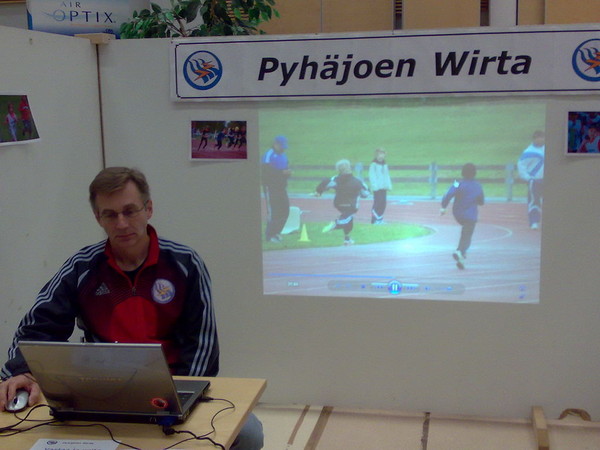 Pyhäjoen Wirta osallistui viime lauantaina Pyhäjoen lukiolaisten järjestämille syysmessuille. Osastolla vieraili paljon väkeä. Wirta mukana SyysmessuillaPyhäjoen Wirta osallistui viime lauantaina lukiolaisten järjestämille perinteisille Syysmessuille. Messuilla vieraili päivän aikana runsaasti väkeä, ja näin ollen myös Wirran osastolla. Kiinnostusta herätti erityisesti kuluvan vuoden aikana eri kisojen still-kuvista tehty videokooste, jota pyöritettiin loossin seinälle heijastettuna. Aku Salmela voitti Wirran tuulipuvunWirran messuosastolla oli myös arvaus/tietokilpailu. Siinä kysyttiin, montako mitalia Wirta saalisti kuluvan vuoden aikana yleisurheilun piirinmestaruuskilpailuissa. Oikean vastauksen - 28 mitalia - tiesi Aku Salmela ja sai samalla arvonnan pääpalkinnon, Wirran tuulipuvun. Kerrottakoon tässä sivumennen, että reiluna nuorena miehenä Aku aikoi luovuttaa palkinnon isälleen Mikko Salmelalle. |