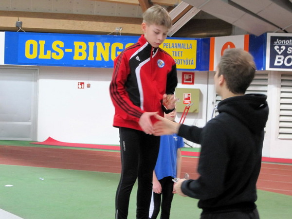 Jouluhallikisat jatkuivat tänään Oulussa. Wirtalaiset saavuttivat kaksi kultaa, hopean, pronssin ja tukun muita hyviä tuloksia. Jouluhallit Oulussa 12. - 13.12.2009Toinen kisapäiväPerinteiset Jouluhallikisat jatkuivat sunnuntaina Ouluhallissa. Vuorossa olivat pitemmät pikamatkat ja pituushyppy. Wirtalaiset petrasivat hyvästä ensimmäisestä kisapäivästä edelleen. Kultaa tuli kaksi, hopeaa yksi ja pronssia samoin yksi. Lisäksi tuomisina oli tukku muita hyviä sijoituksia ja omia ennätyksiä. Vesa Kittilä otti kultaa P10-sarjan pituudessa tuloksella 418. Tulos tuli viimeisellä hypyllä. Tuplamestaruuden Vesku varmisti 150 metrillä, jossa hän juoksi 22,81. Milja Raitanen tuli hienosti toiseksi T8-sarjan 150 metrillä ajalla 25,70. Pituudessa Milja hyppäsi 329 jääden niukasti mitaleilta. Tytti Karsikko hyppäsi T10-sarjan pituudessa tuloksen 311 ja Jarkko Karsikko P10-sarjan pituudessa 348. Mikko Mustonen juoksi P12-sarjassa hienosti 60 m aidoissa pronssia, aika 11,86. 200 metrillä Mikko juoksi ajan 31,86. Janne Keskitalo juoksi P14-sarjassa 60 m aidoissa uuden ennätyksen, tulos 11,96. Lisäksi Janne juoksi 200 metrillä ajan 31,82. Kuvia kisoista kuvagalleriassa. Lisätietoja: http://www.tilastopaja.fi |