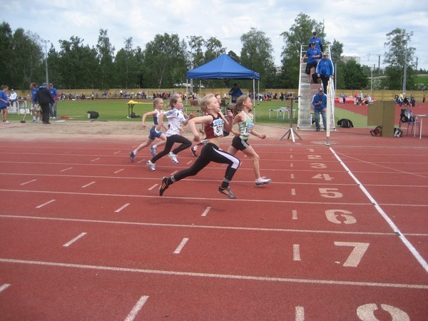 Milja Raitanen ja Vesa Kittilä kilpailivat viikonvaihteessa Helsingissä Eläintarhan kentällä Finlandia Junior Games -kisoissa. T9-sarjan 40 metrin juoksussa Milja eteni alkueristä jatkoon uudella ennätyksellään 6,87. Finaalissa Milja oli toinen jälleen uudella ennätyksellään 6,72. Miljat ottivat kisassa kaksoisvoiton - Vahdon Tuiskua edustava voittaja Milja Heikura juoksi ajan 6,70, joten eroa tyttöjen välillä oli vain 2 sadasosaa. Kilpailuun osallistui 35 juoksijaa Suomesta ja 5 Virosta. T9-sarjan pituushypyn karsinnassa Milja eteni finaaliin hyppäämällä 363. Karsinnassa oli mukana 37 hyppääjää. Sunnuntain finaalissa Milja hyppäsi tuloksen 356 ja oli kokonaiskilpailun kolmas. P11-sarjan 60 metrillä Vesa Kittilä eteni alkueristä jatkoon ajalla 9,12. Finaalissa Vesan aika 9,14 toi kuudennen sijan. Virolaisvoittajan aika oli 8,76. Pituushypyn karsinnassa Vesa oli 14. tuloksella 396. Finaaliin selvisi 12 hyppääjää, joista 12. tulos oli 397. |