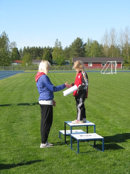 Viikon mittaisen lasten yleisurheilukoulun aikana opeteltiin monia lajeja. Viisipäiväinen lasten yleisurheilukoulu päättyi perjantai-iltana palkintojenjakoon. Kaikki yleisurheilukouluun osallistuneet lapset saivat oman yleisurheiludiplominsa ja jokainen pääsi vuorollaan hakemaan diplominsa korkeimmalle korokkeelle nousten. Samalla harjoiteltiin palkintokorokkeella toimimista - palkinnon vastaanottamista ja kättelyä. Niistäkin taidoista voi olla hyötyä myöhemmissä koitoksissa. Ensimmäistä kertaa tässä muodossa järjestettyyn lasten yleisurheilukouluun osallistui kolmisenkymmentä 3-10-vuotiasta lasta. Viiden päivän "kurssi" päätettiin järjestää, kun Wirta sai Raahen Seudun Osuuspankin avustuksella aiemminkin Wirrassa ohjaajana toimineen Terhi Piilolan kahdeksi viikoksi kesätöihin. |