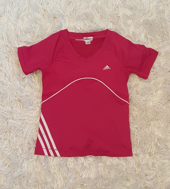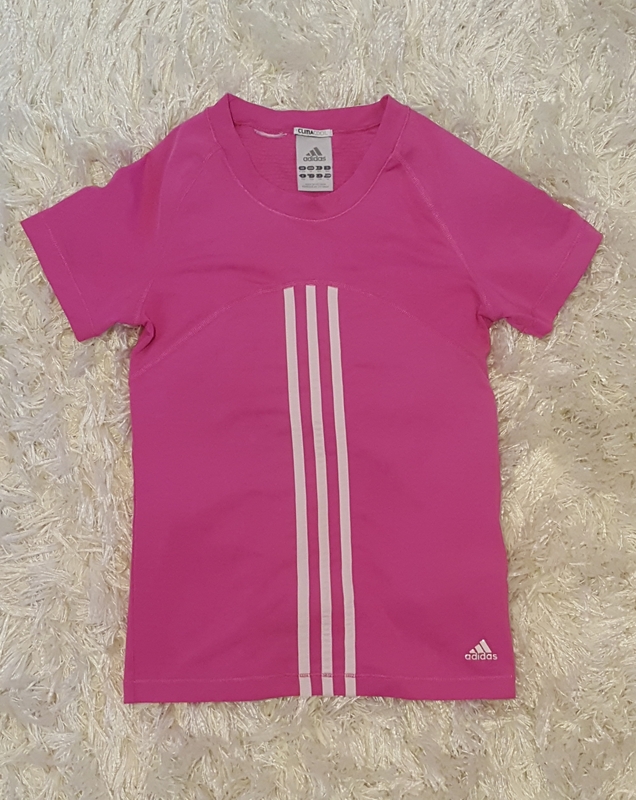 9. Adidaksen vaaleanpunainen urheilupaita. Koko 140 cm. Hengittävä materiaali. Todella hyvässä kunnossa, kuin uusi. Hintapyyntö: 6 € (puh. 0442136195)