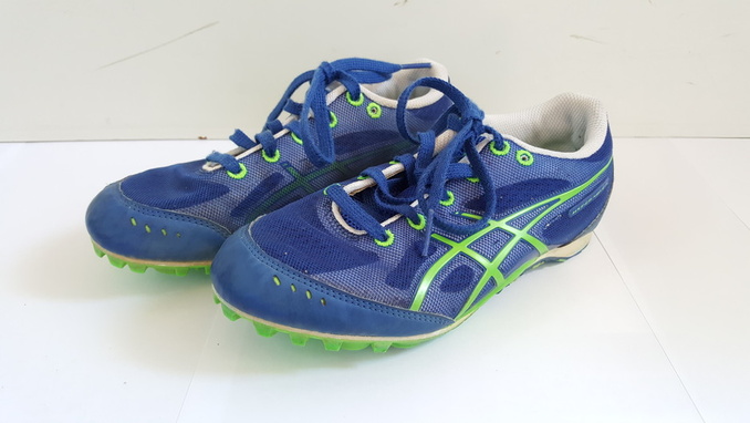 2. Asicsin sinivihreät yleispiikkarit. Koko 35. Käytetyt, mutta ehjät ja hyvässä kunnossa. Hintapyyntö: 25 € (puh. 0442136195)